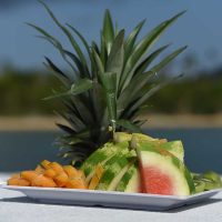 After discovering an entirely new underwater world in your snorkeling session, we’ll drop anchor at one of Vieques’ famed hidden beaches. Sink and spread your toes into the warm, then cool sand, soak up the jaw-dropping views of El Yunque rising in the distance, and savor a refreshing selection of local snacks and fruits prepared by our crew.